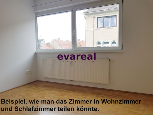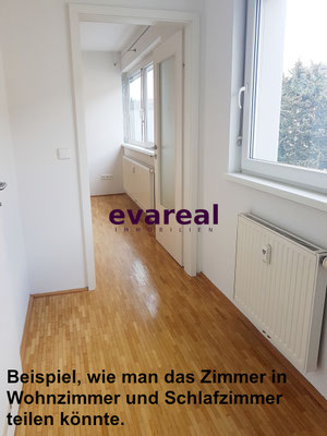 2-Zimmer-Wohnung möglich: Das große Zimmer könnte auch geteilt werden.